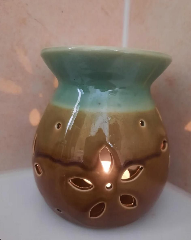 Teal Ceramic oil burner. Comes with 2 tea lights.